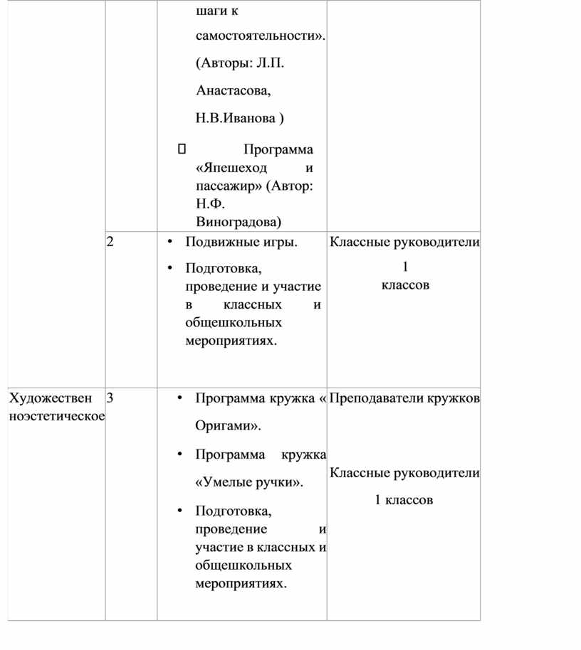 шаги к самостоятельности». (Авторы: Л.П. Анастасова, Н.В.Иванова ) Программа «Япешеход и пассажир» (Автор: Н.Ф. Виноградова) |