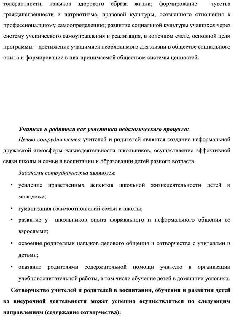 Целью сотрудничества учителей и родителей является создание неформальной дружеской атмосферы жизнедеятельности школьников, осуществление эффективной связи школы и семьи в воспитании и образовании детей разного возраста.