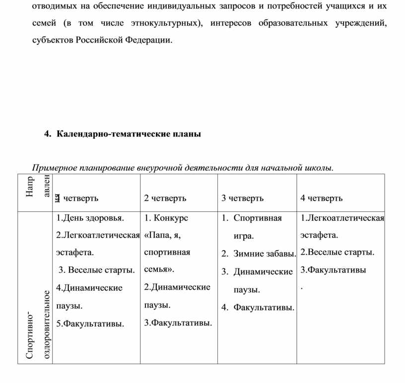 1. Спортивная игра. 2. Зимние забавы. 3. Динамические паузы. 4. Факультативы. |