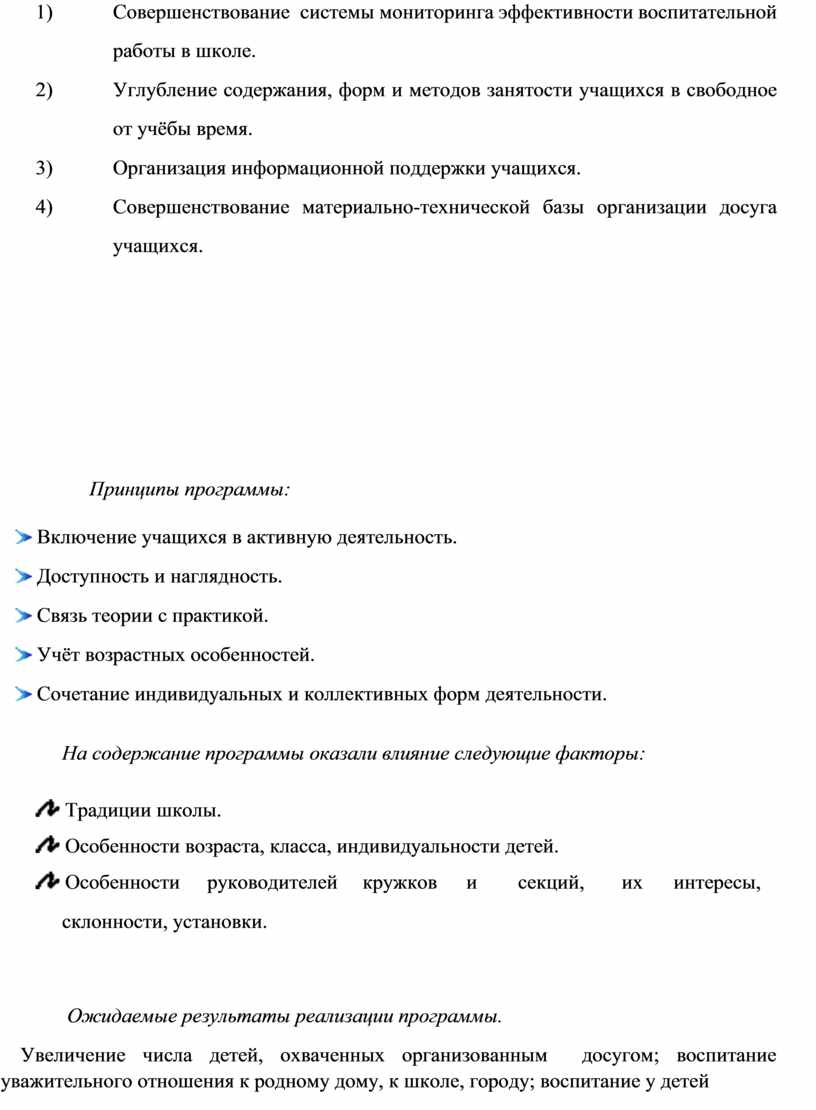 1) Организация общественно-полезной и досуговой деятельности учащихся совместно с общественными организациями, ДДТ, театрами, библиотеками, семьями учащихся.
