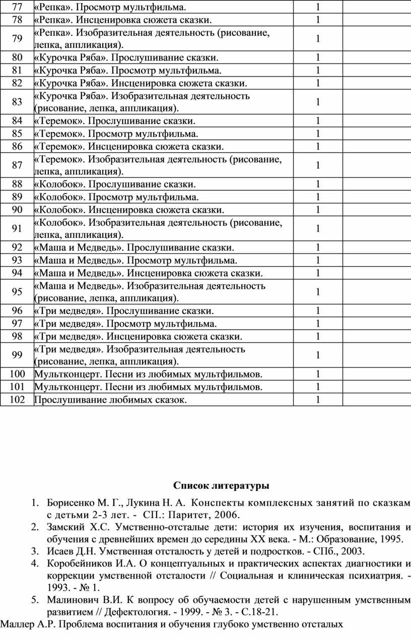 3. Исаев Д.Н. Умственная отсталость у детей и подростков. - СПб., 2003.