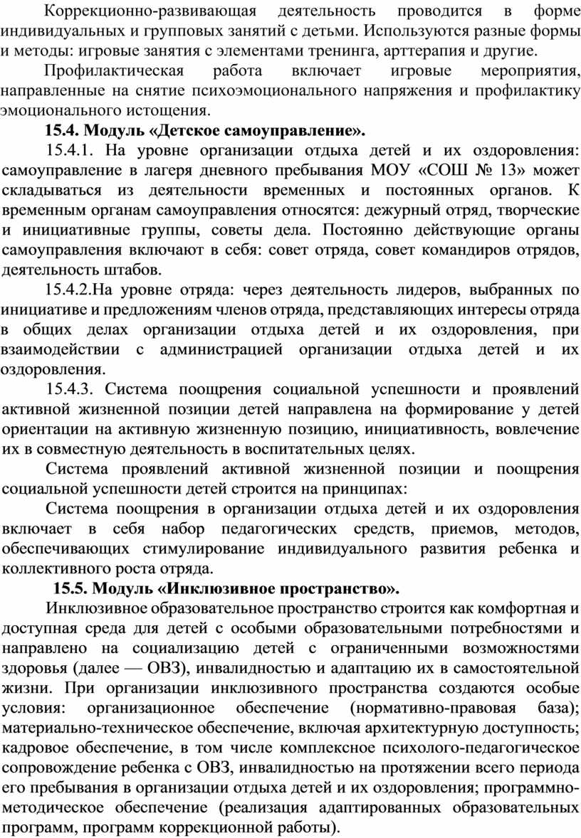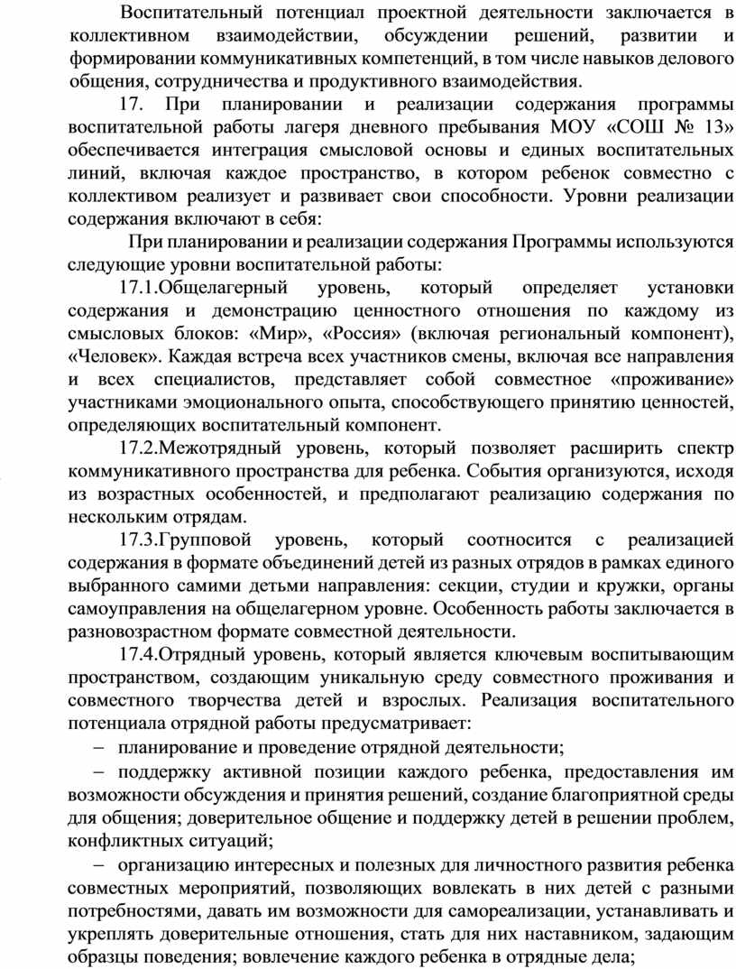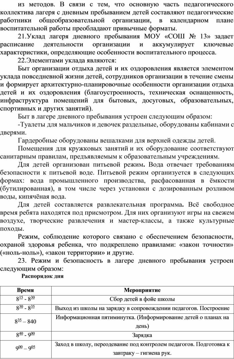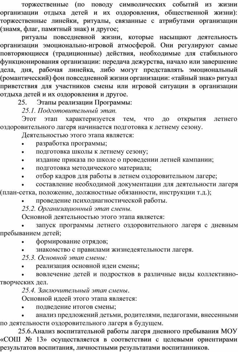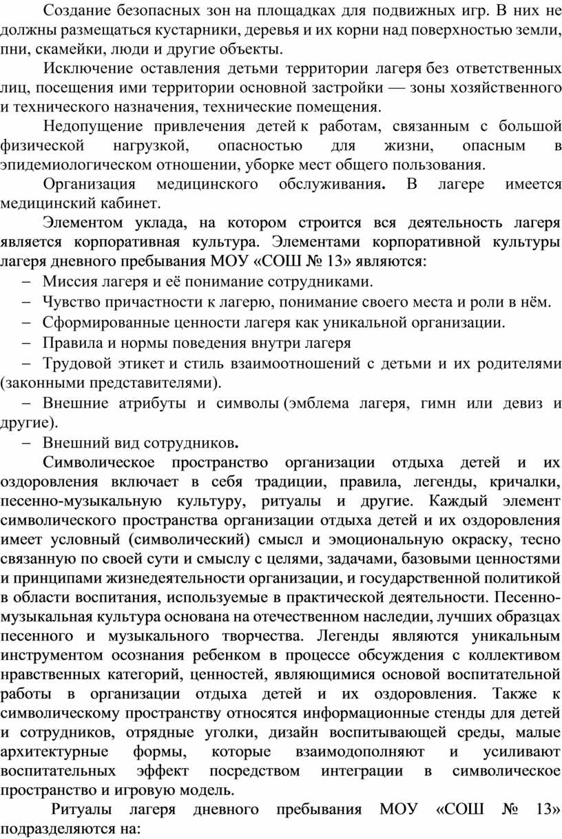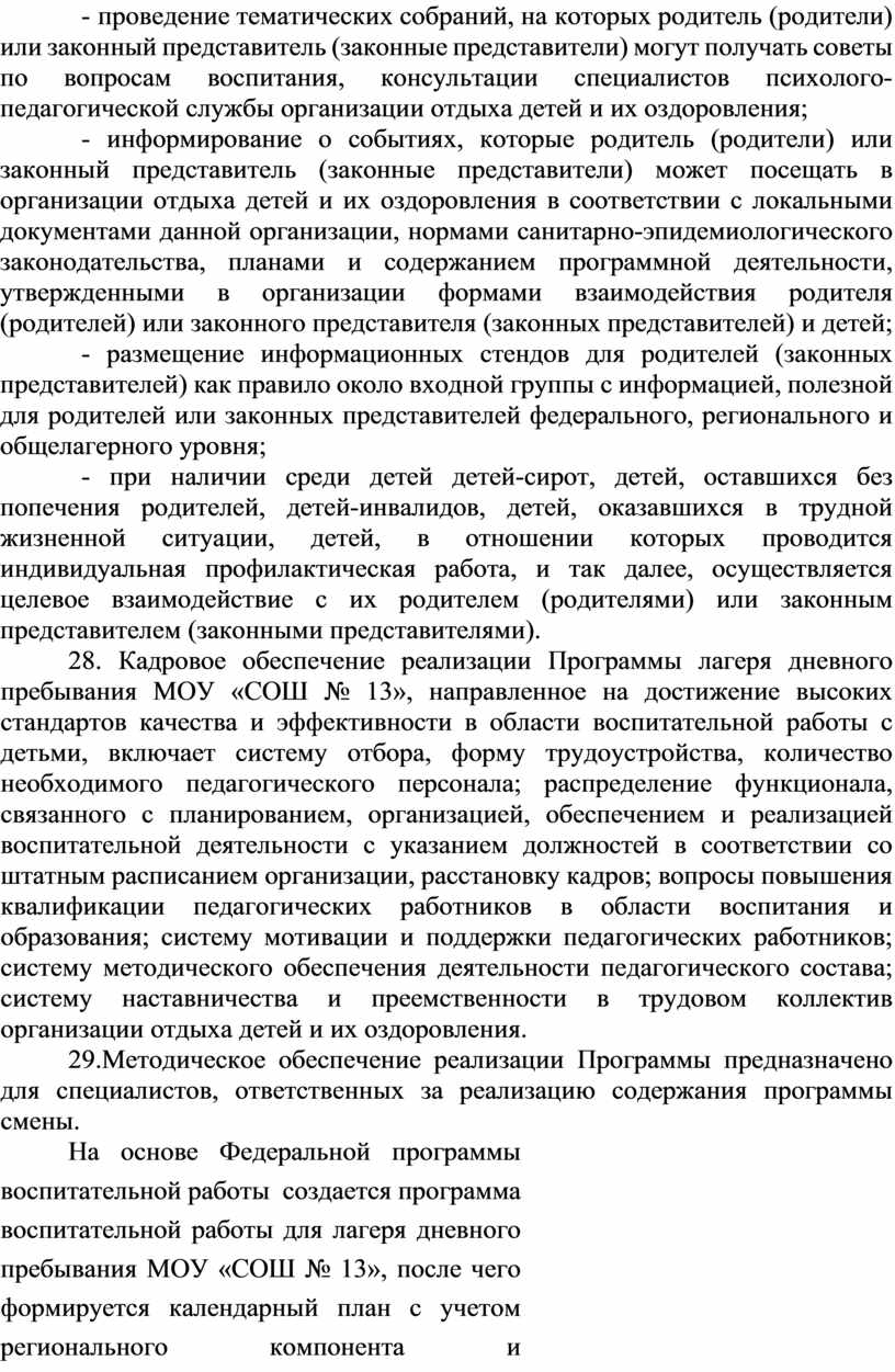 Программа воспитательной работы лагеря дневного пребывания МОБУ «СОШ № 13» (далее - Программа) разработана: