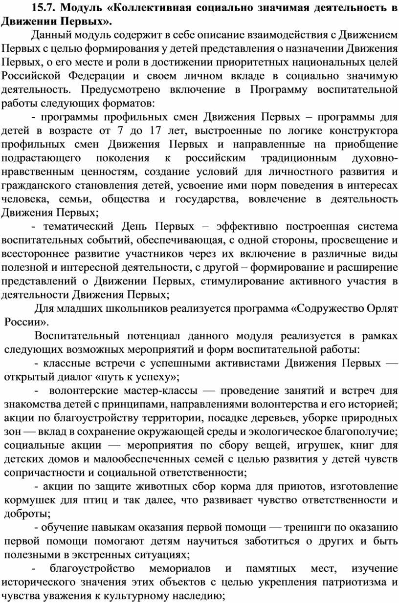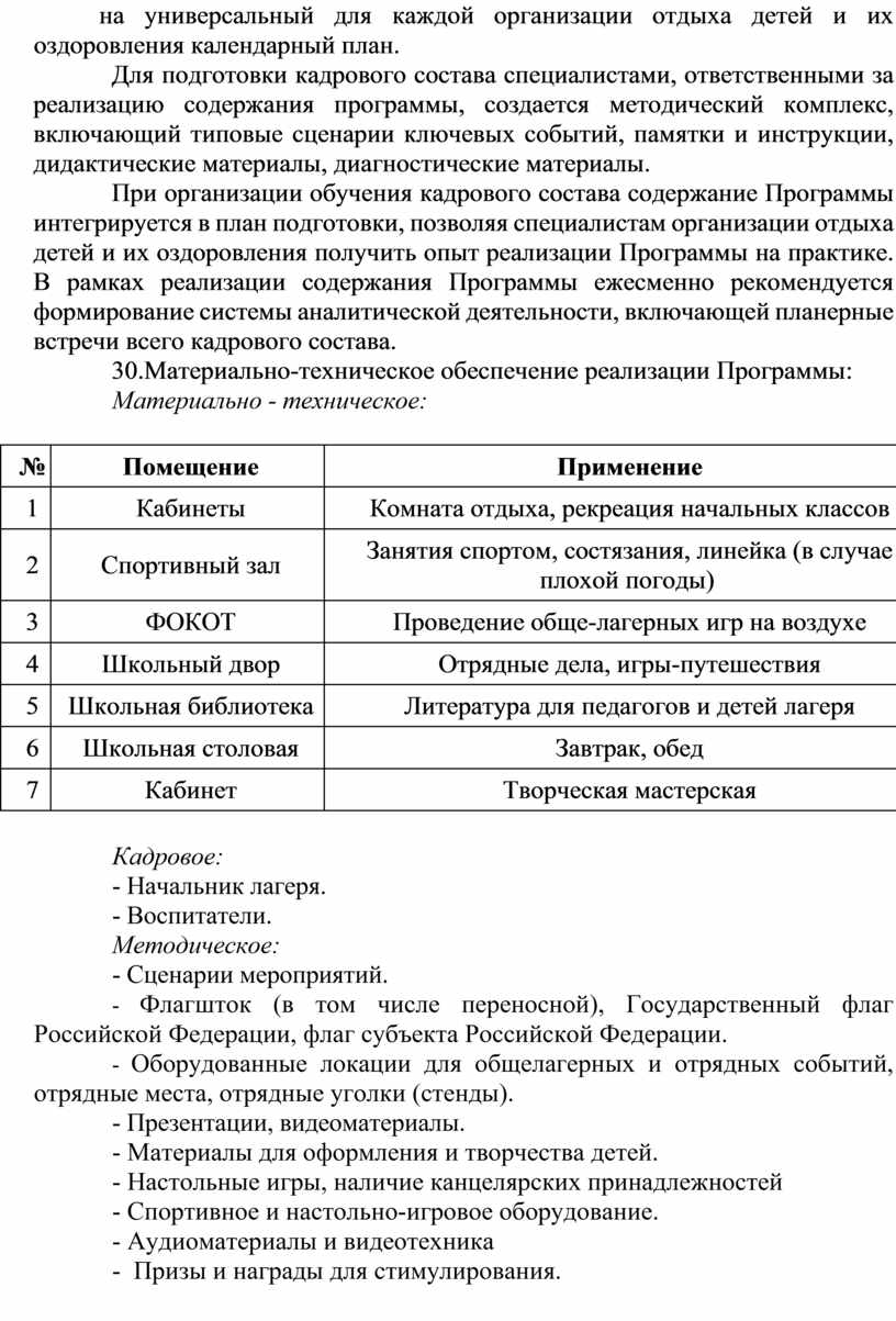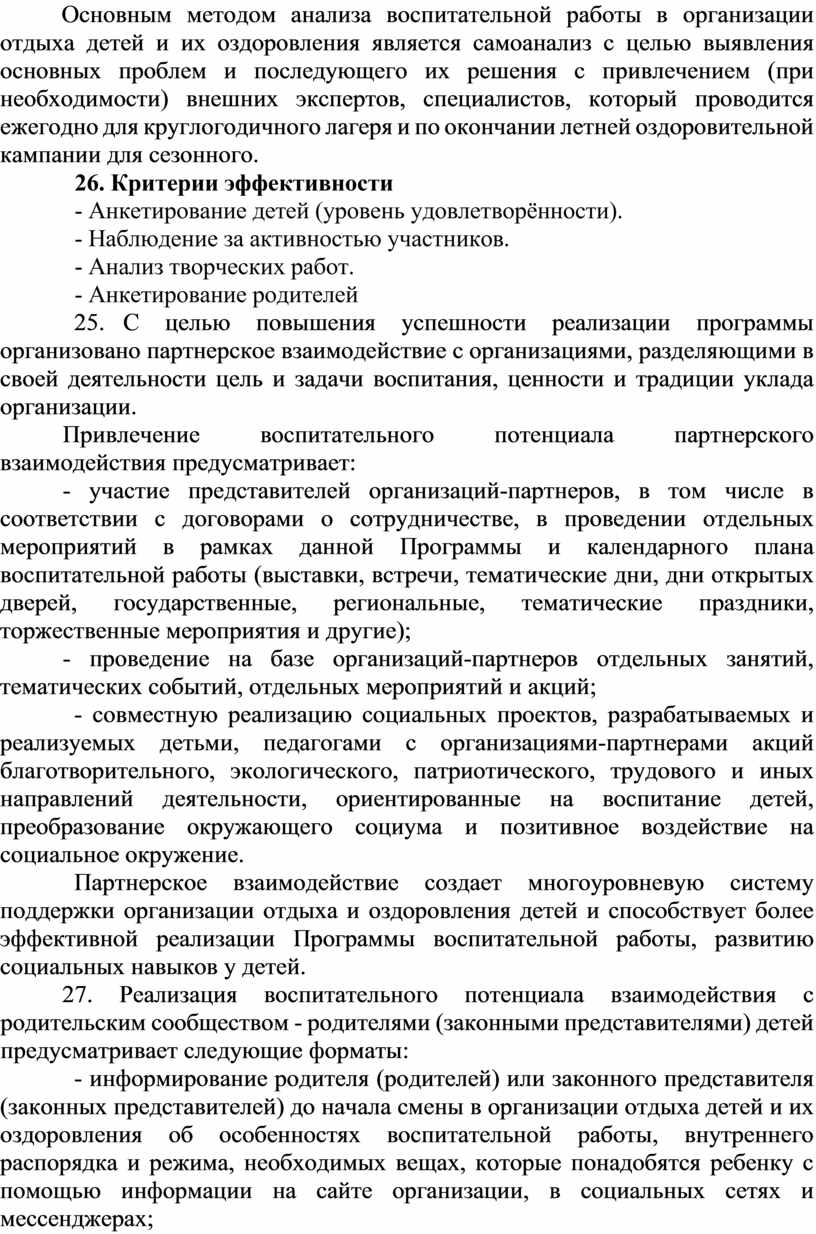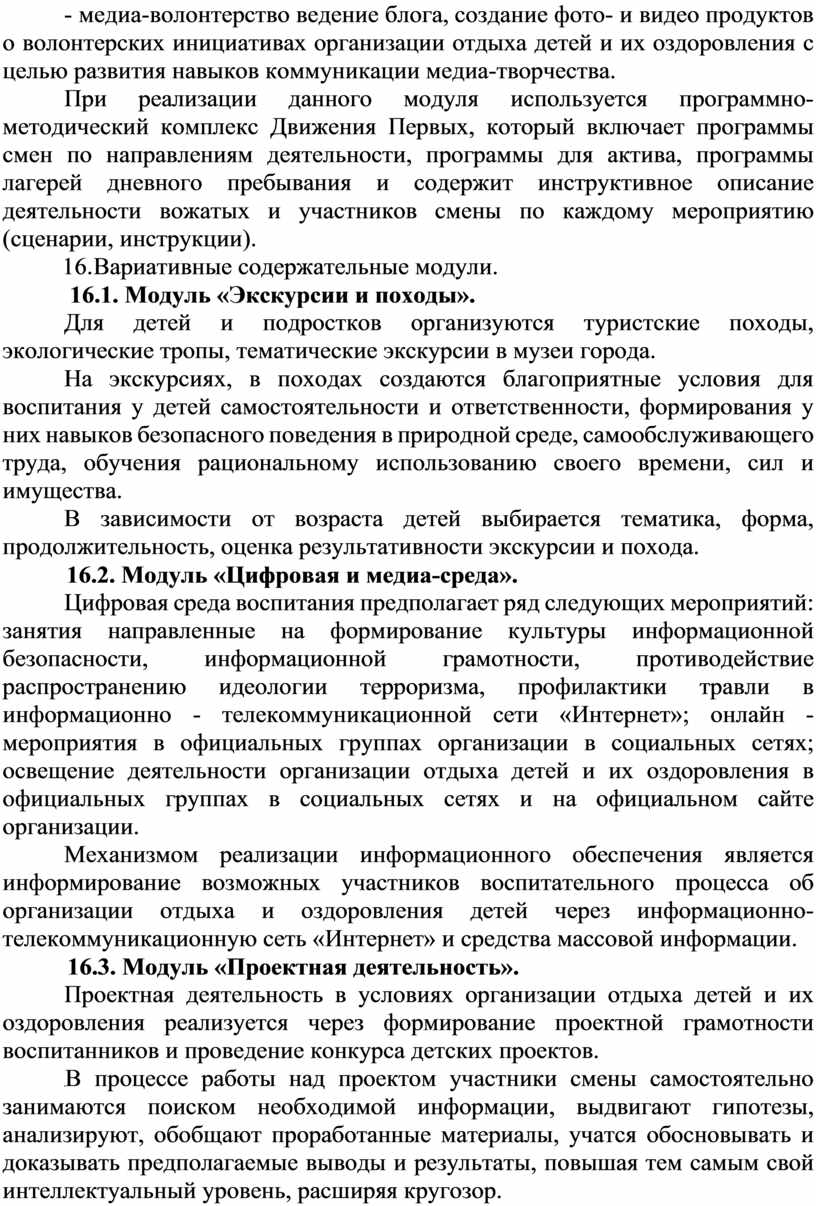Данная Программа обеспечивает единство воспитательного пространства, ценностно-целевого содержания воспитания и воспитательной деятельности в организациях отдыха детей и их оздоровления.