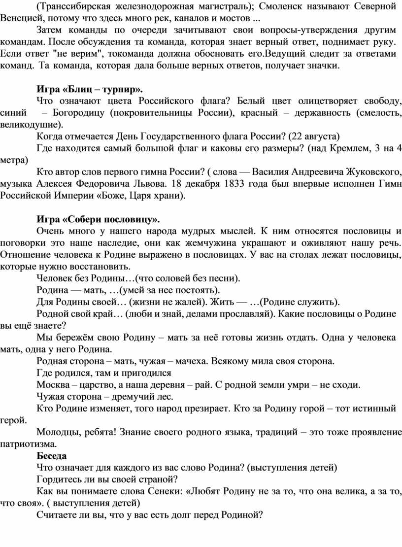 В современных условиях важно воспитывать у детей чувство патриотизма, уважение к истории и культуре России.