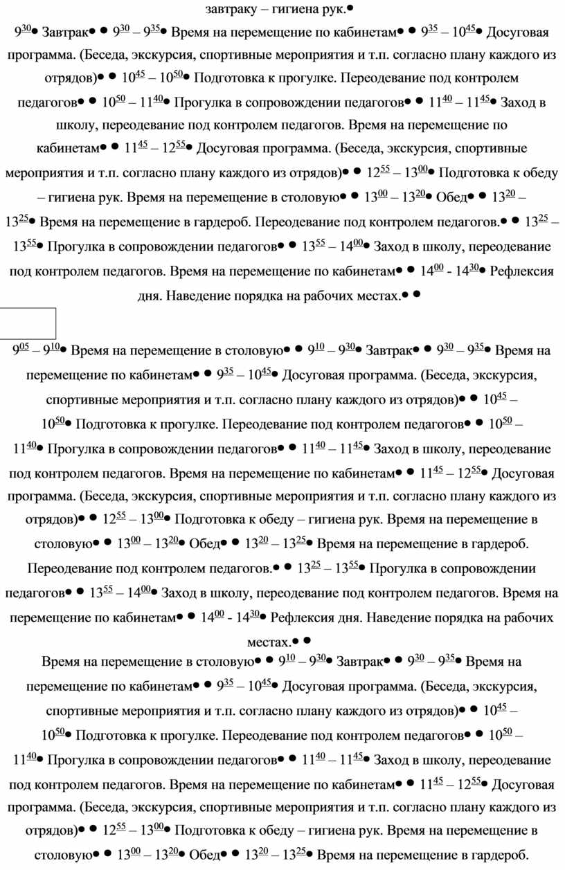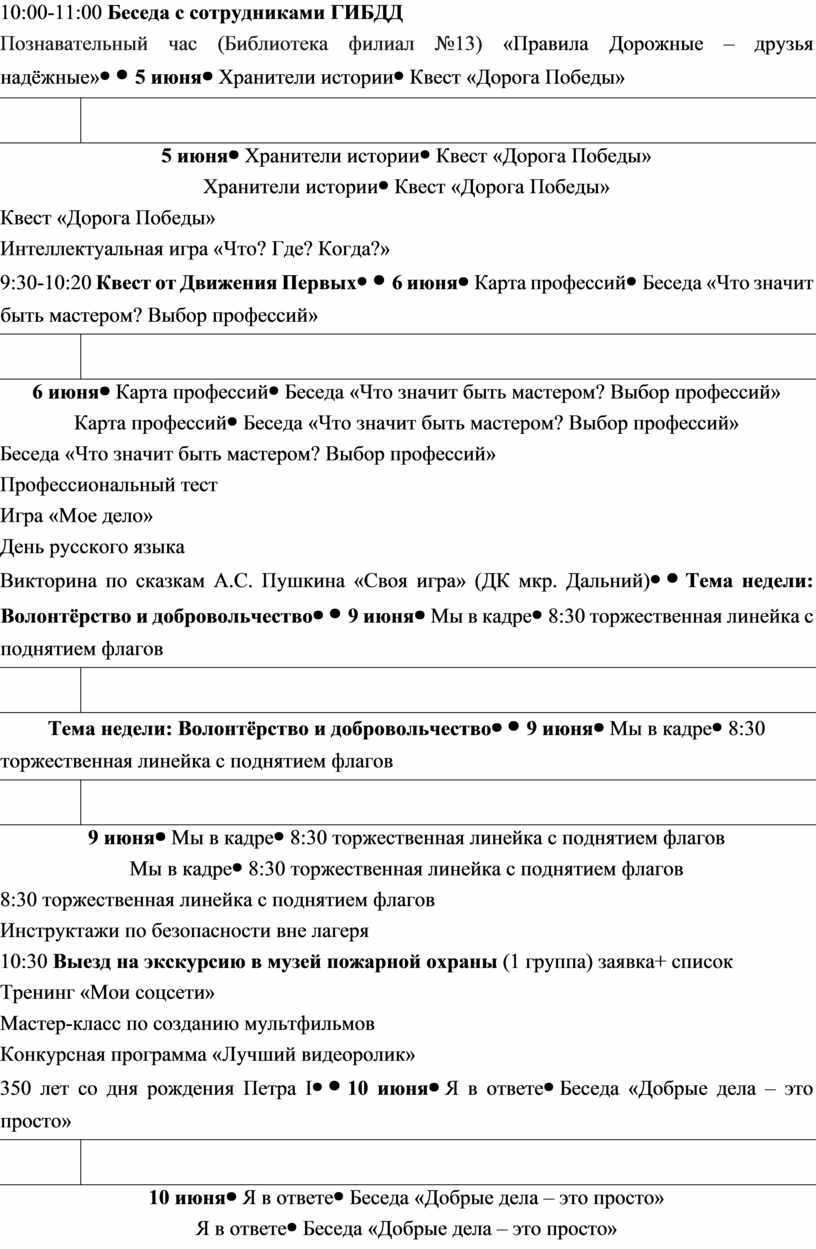 организацией досуговой занятости, перечнем мероприятий |