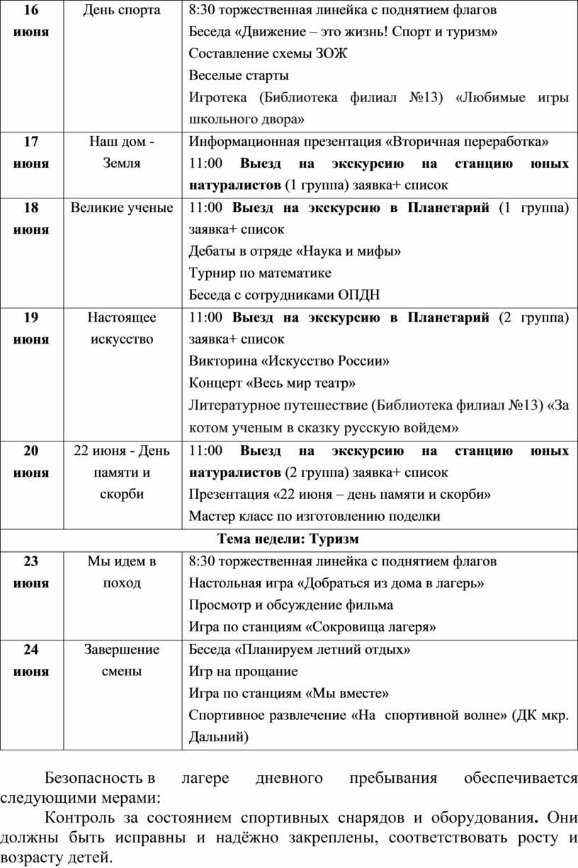 лагеря дневного пребывания