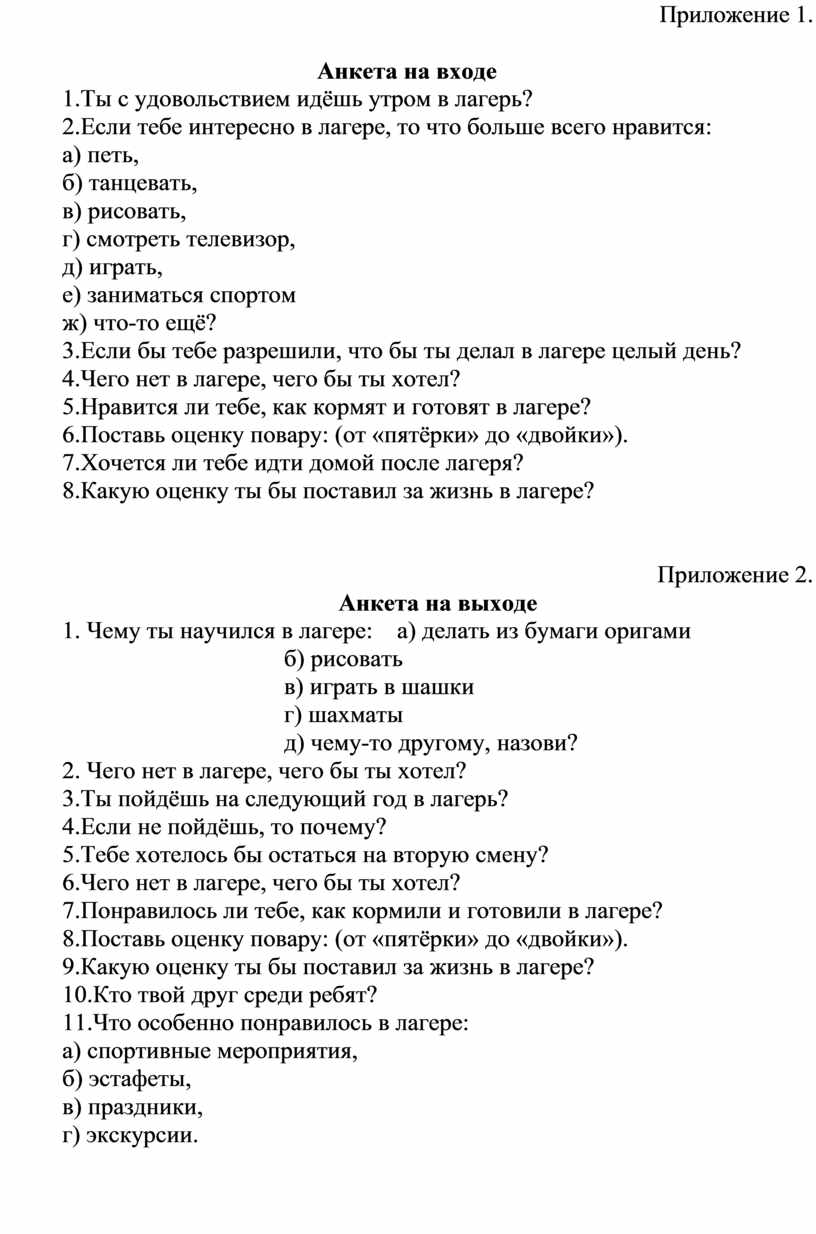 Анкета по выявлению степени удовлетворенности родителей организацией работы лагеря с дневным пребыванием детей