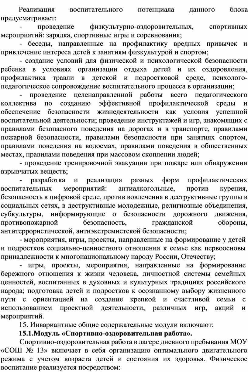 Основные направления воспитательной работы лагеря дневного пребывания МОУ «СОШ № 13» включают в себя: