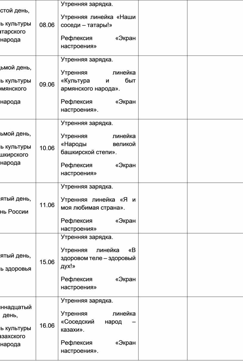 Утренняя зарядка. Утренняя линейка «Народы великой башкирской степи». Рефлексия «Экран настроения» |