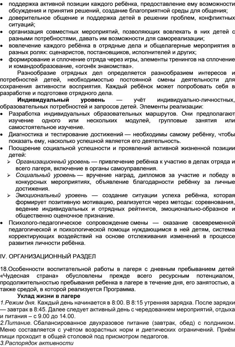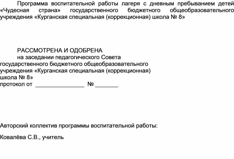 Программа воспитательной работы лагеря с дневным пребыванием детей «Чудесная страна» государственного бюджетного общеобразовательного учреждения «Курганская специальная (коррекционная) школа № 8»