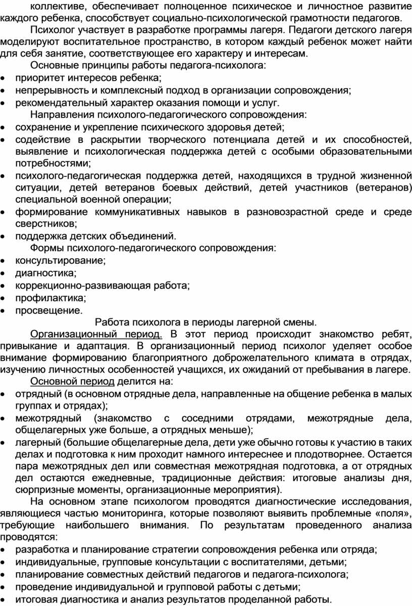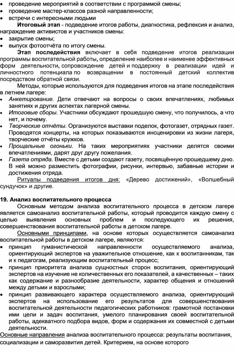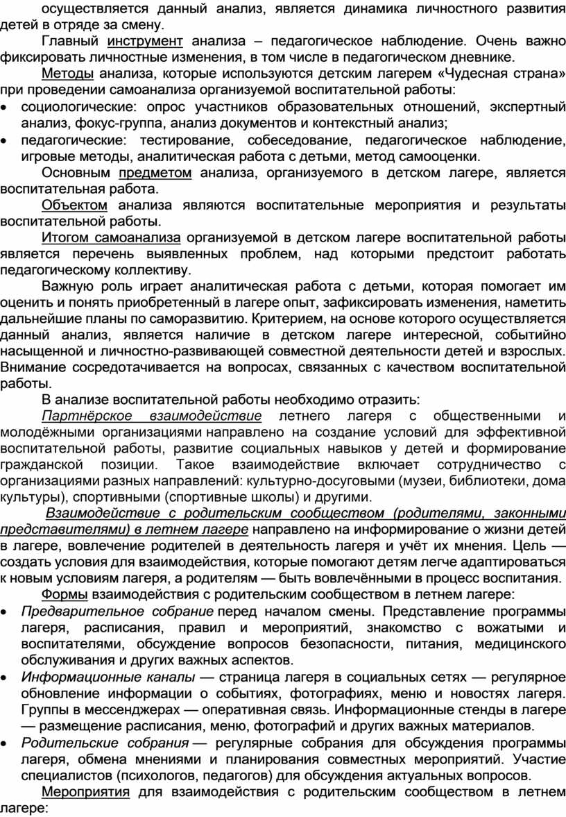 Основным предметом анализа, организуемого в детском лагере, является воспитательная работа.
