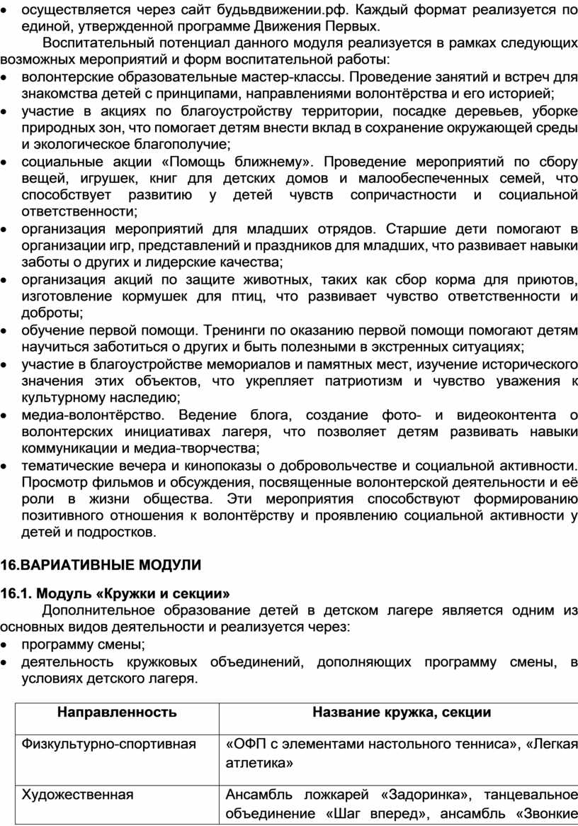 Достижение цели и решение задач воспитания осуществляется в рамках всех направлений деятельности детского лагеря. Содержание, виды и формы воспитательной деятельности представлены в соответствующих блоках и модулях (инвариантных и вариативных).