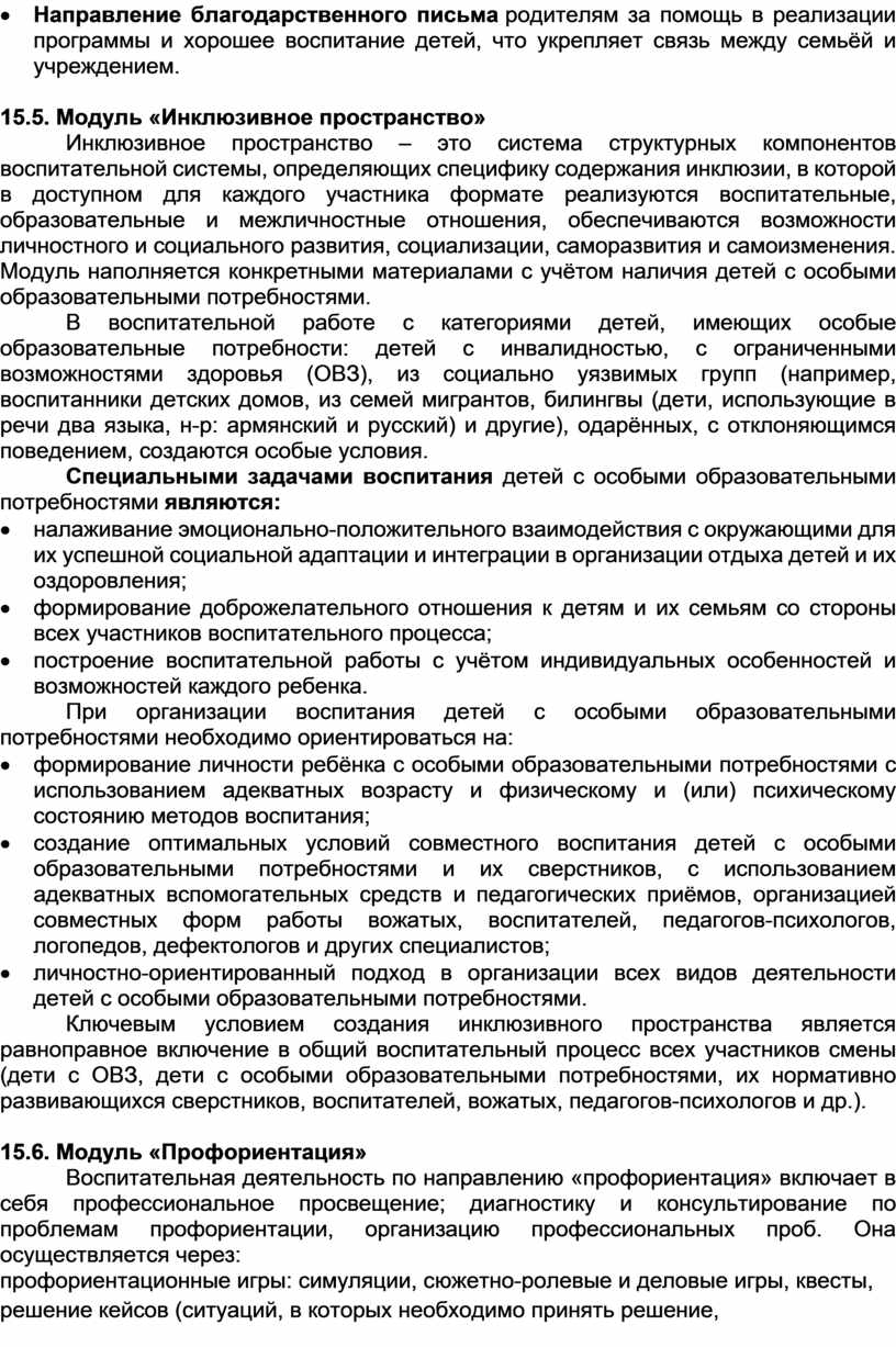 · Поощрение и благодарность — выражение благодарности родителям за участие и помощь в работе лагеря, награждение активных родителей грамотами и благодарственными письмами.