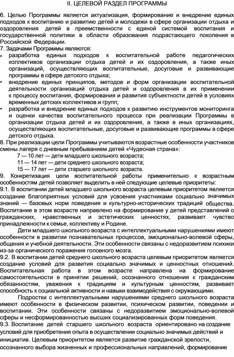II. ЦЕЛЕВОЙ РАЗДЕЛ ПРОГРАММЫ