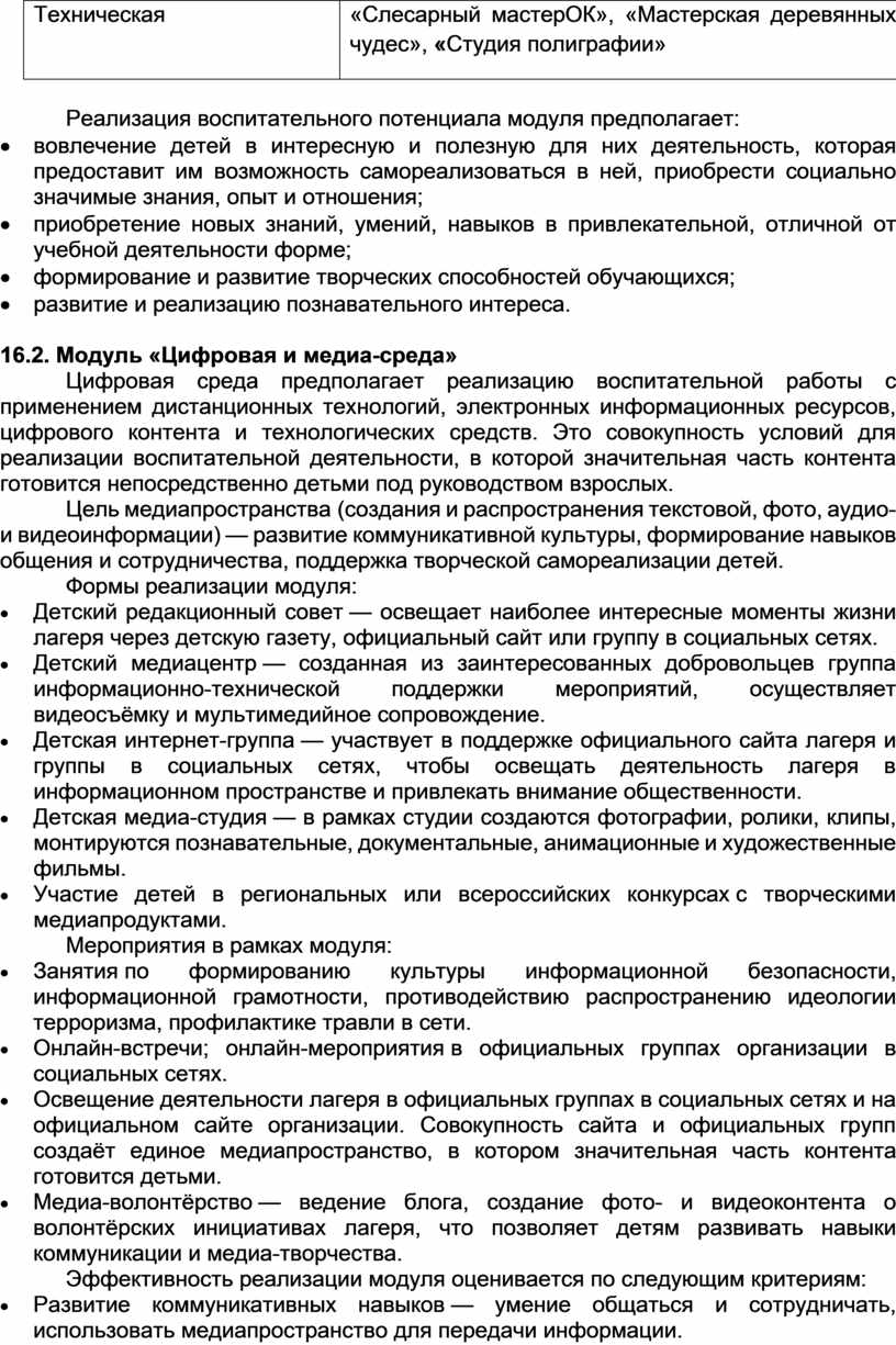 · Информационные каналы — страница лагеря в социальных сетях — регулярное обновление информации о событиях, фотографиях, меню и новостях лагеря. Группы в мессенджерах — оперативная связь. Информационные стенды в лагере — размещение расписания, меню, фотографий и других важных материалов.