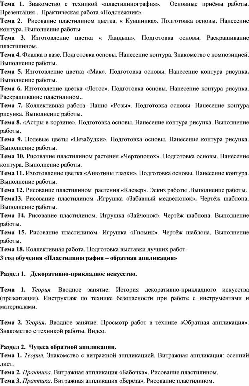 Третий год обучения посвящён искусству пластилинография в технике обратная аппликация. Обратная аппликация – ещё одна разновидность аппликации из пластилина. Она выполняется на гладкой и прозрачной поверхности стекла или пластмассы. Обозначив (выложив) пластилином контур будущего рисунка, последовательно заполняются открытые участки пластилином. По окончании работы, перевернув изделие гладкой стороной к себе, получим удивительный рисунок для картины или панно.