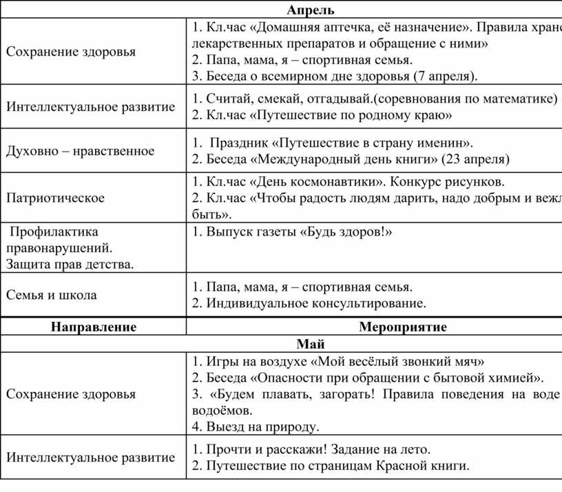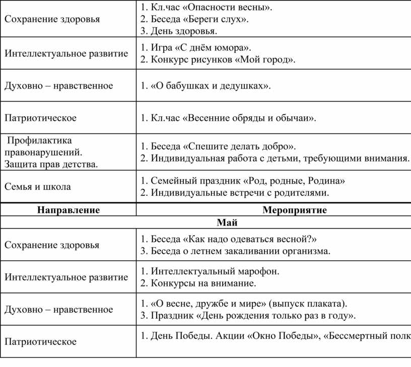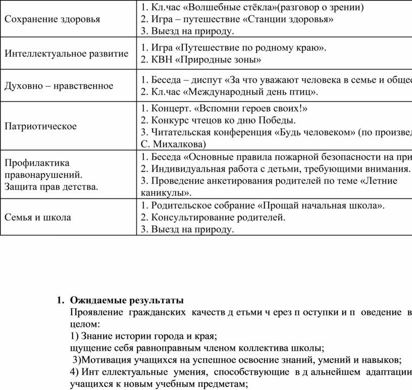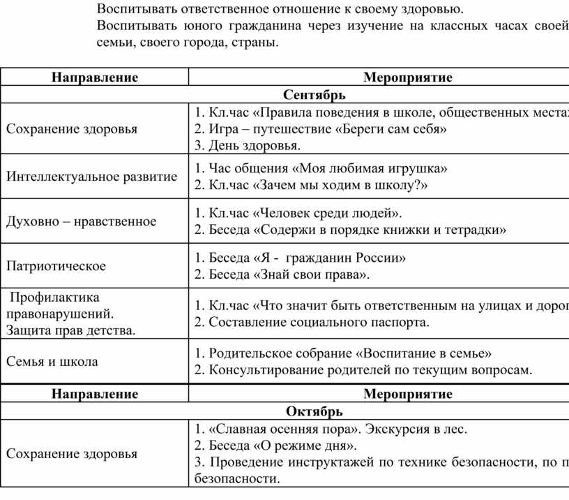 1. Кл.чac «Нeвидимыe врaги чeлoвeкa, кoтoрыe мeшaют жить». 2. Прoгулки в прирoду. 3. «Путь к дoбрoму здoрoвью». |