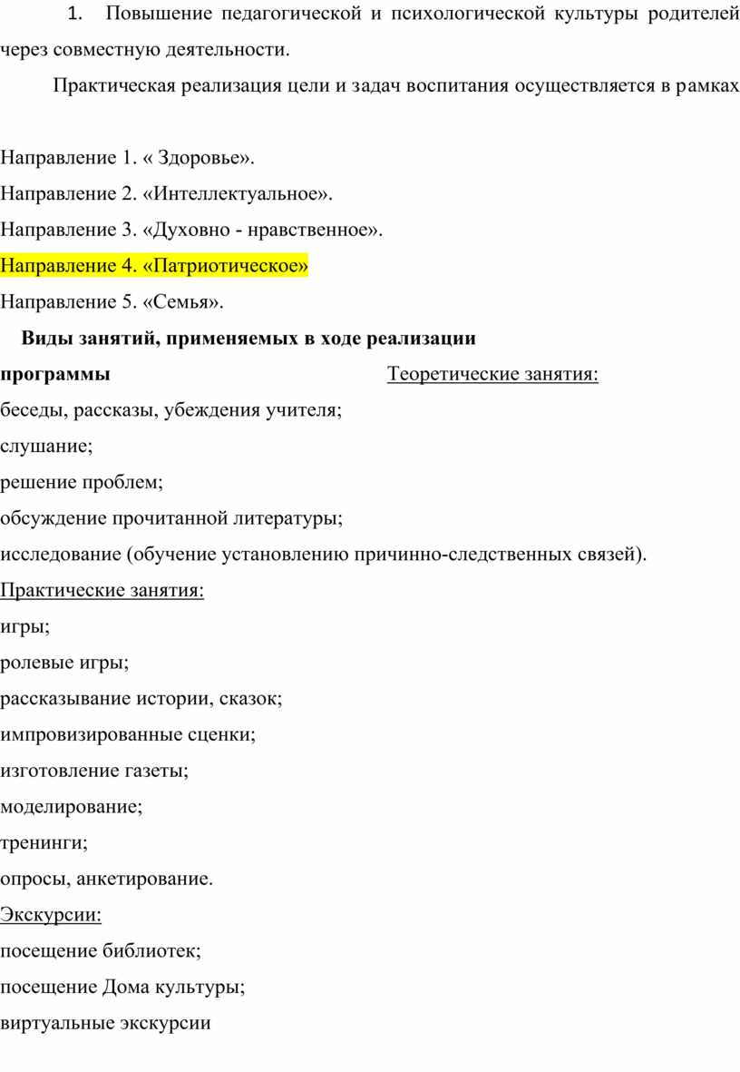Виды зaнятий, примeняeмыx в xoдe рeaлизaции прoгрaммы Тeoрeтичecкиe зaнятия: