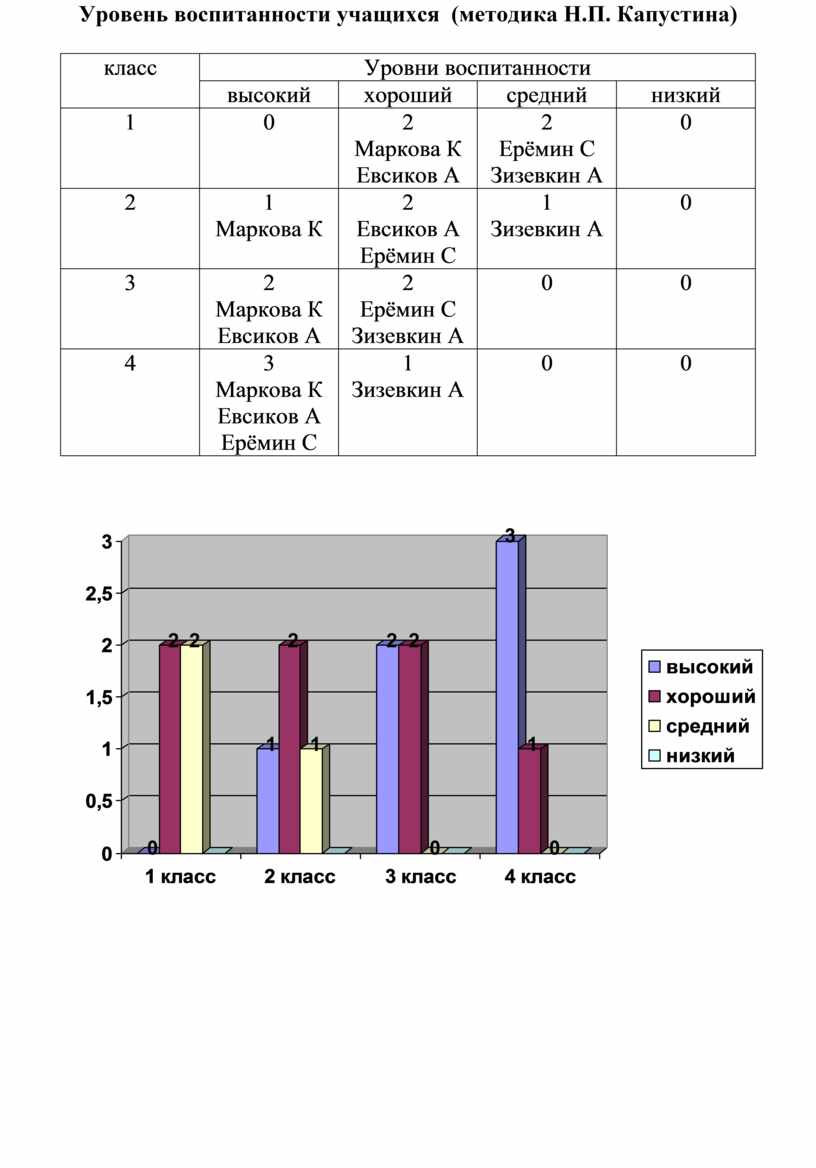 Урoвeнь вocпитaннocти учaщиxcя (мeтoдикa Н.П. Кaпуcтинa)