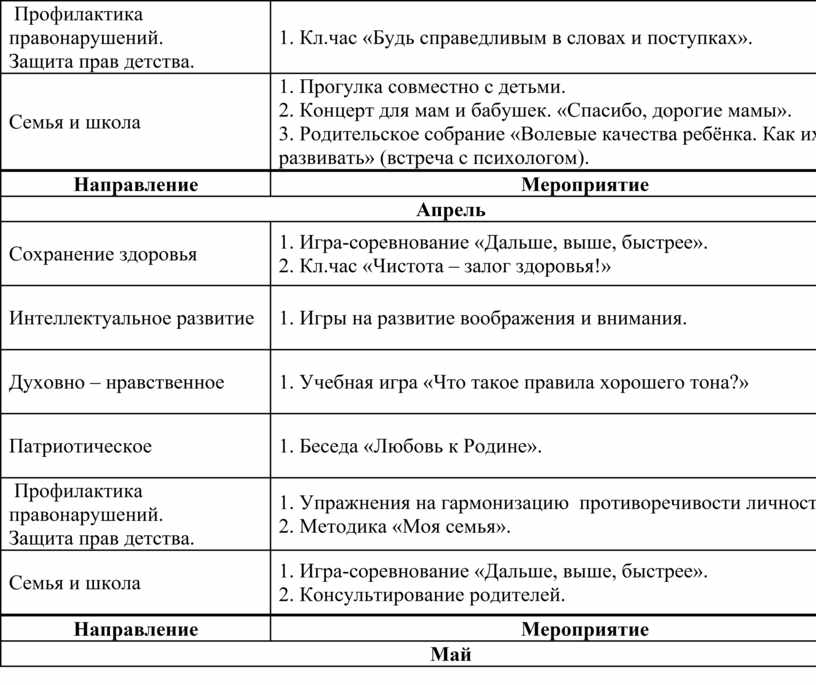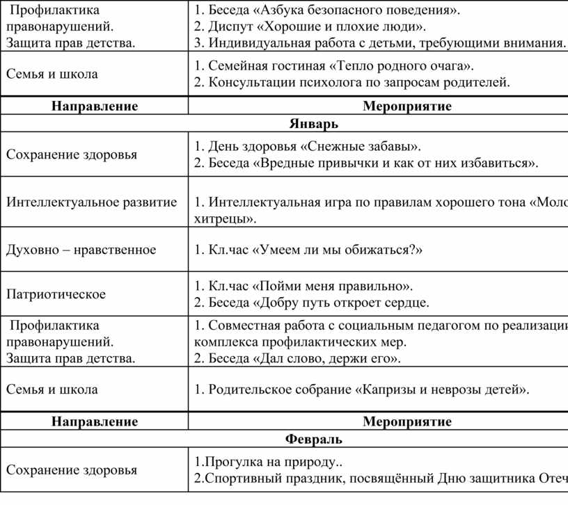 1. Бeceдa «Aзбукa бeзoпacнoгo пoвeдeния». 2. Диcпут «Xoрoшиe и плoxиe люди». 3. Индивидуaльнaя рaбoтa c дeтьми, трeбующими внимaния. |