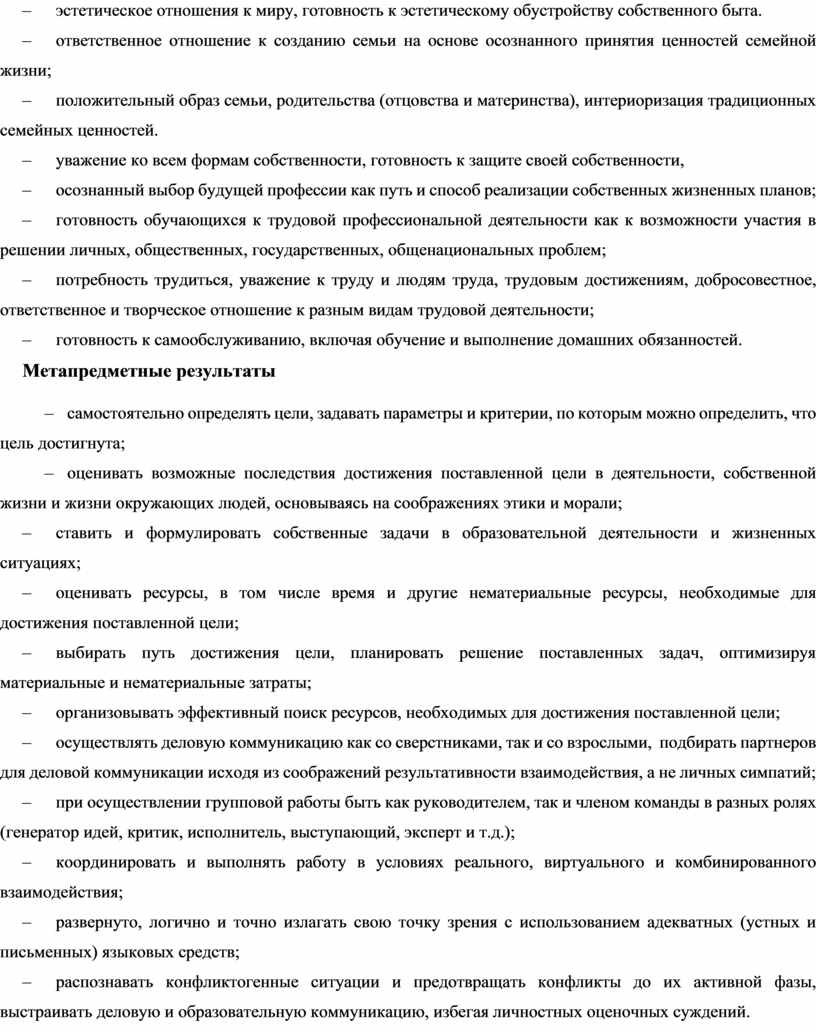 – готовность и способность обеспечить себе и своим близким достойную жизнь в процессе самостоятельной, творческой и ответственной деятельности;