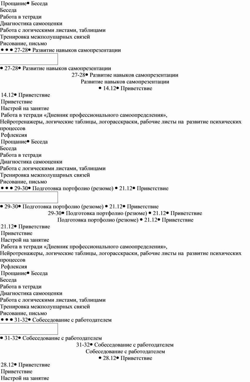Подготовка портфолио (резюме) |