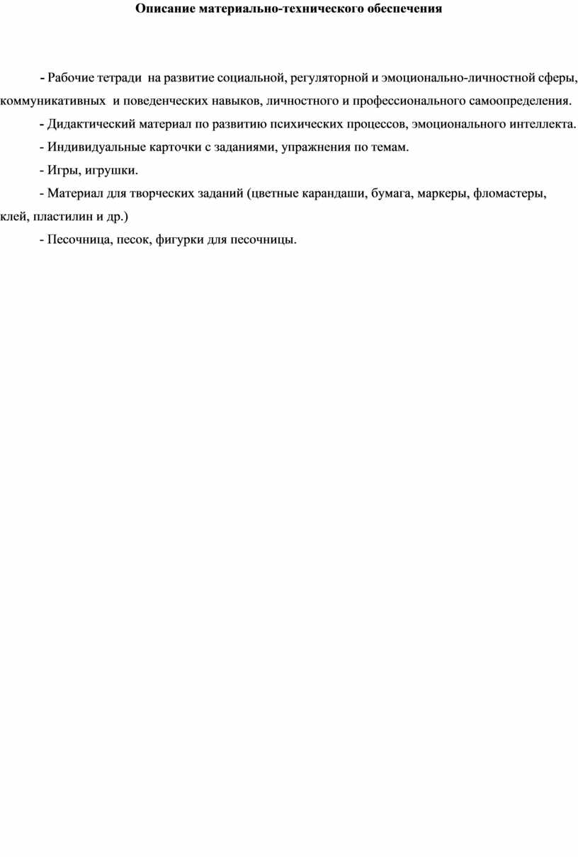 Описание материально-технического обеспечения