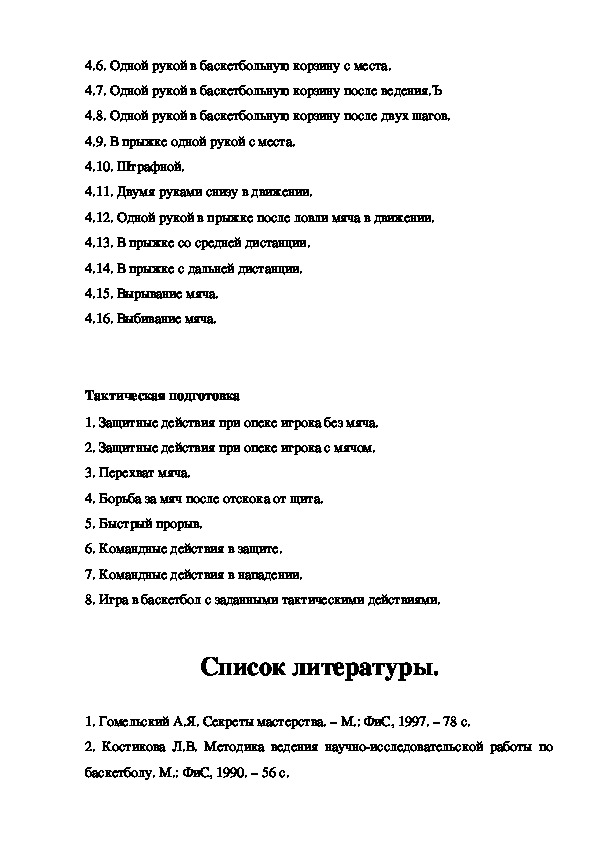 1. Гомельский А.Я. Секреты мастерства. – М.: ФиС, 1997. – 78 с.
