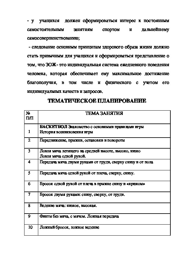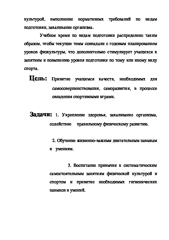перемещений, привитие стойкого интереса к занятиям физическойкультурой, выполнение нормативных требований по видам