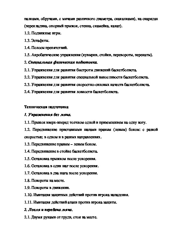 4. Техническая подготовка баскетболиста.