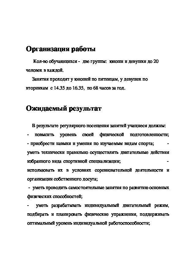 Колво обучающихся две группы: юноши и девушки до 20