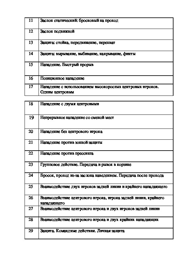 6. Командные действия в защите.