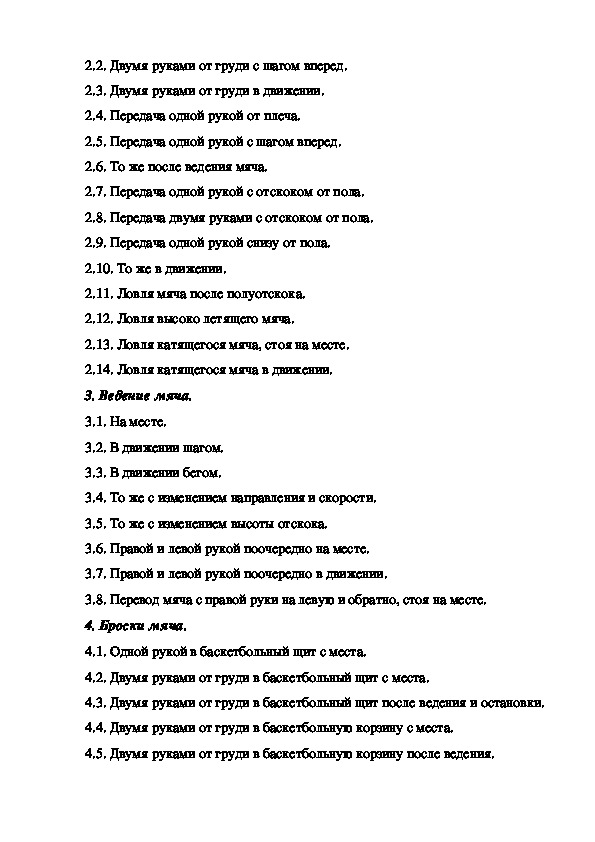 4.5. Двумя руками от груди в баскетбольную корзину после ведения.4.6. Одной рукой в баскетбольную корзину с места.