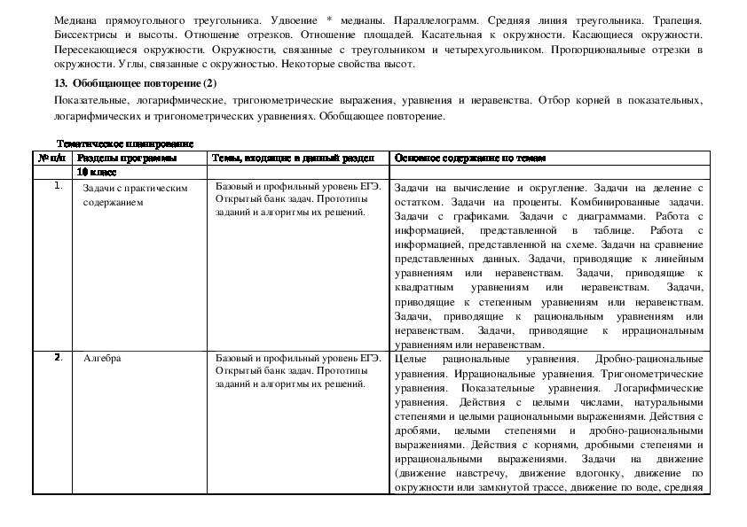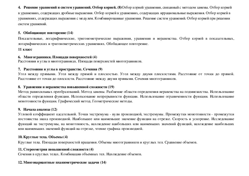 Изучение данного курса позволит систематизировано повторить школьный курс алгебры и начал анализа, геометрии, подготовить учащихся к сдаче экзамена. Поэтому в содержание курса включены основные ключевые темы школьного курса математики, входящие в материалы ЕГЭ.