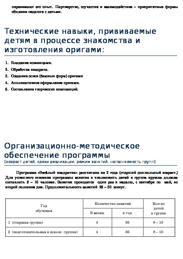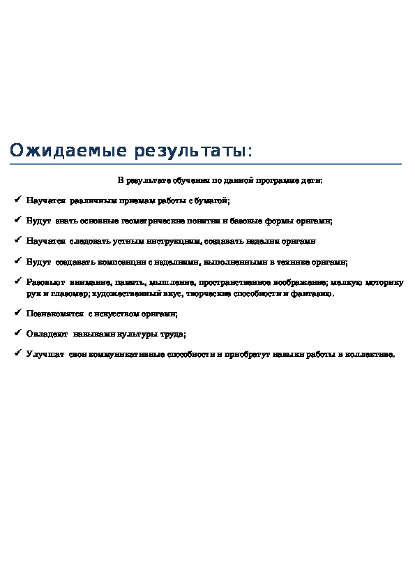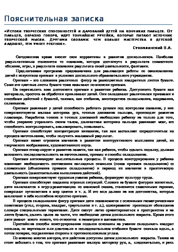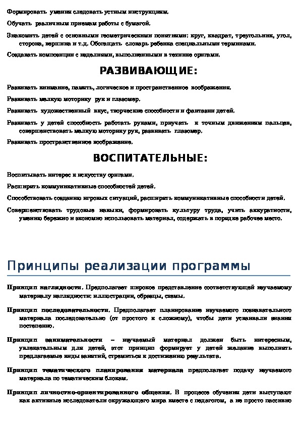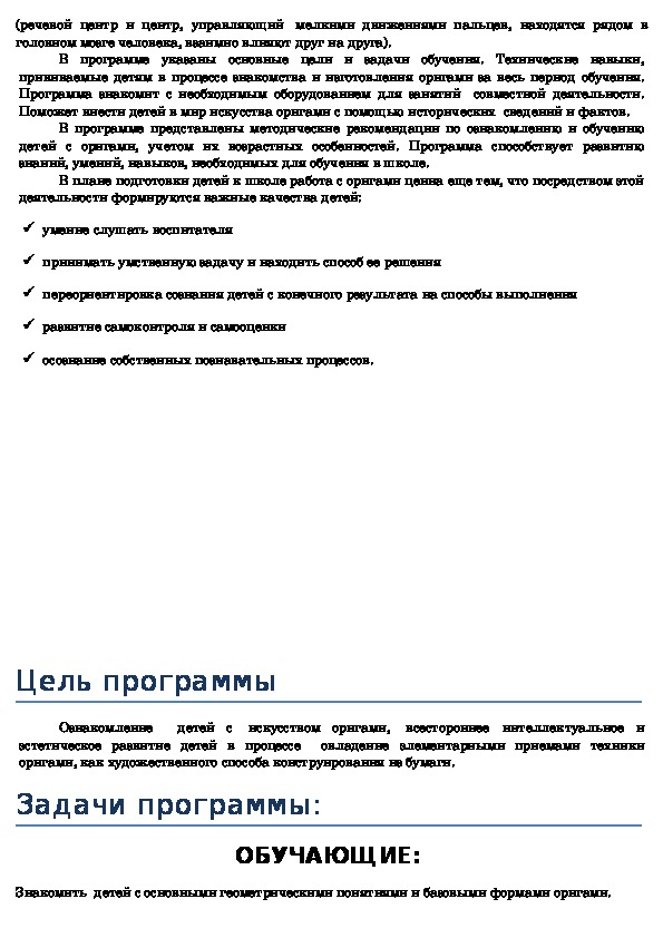 детей с оригами, учетом их возрастных особенностей. Программа способствует развитию