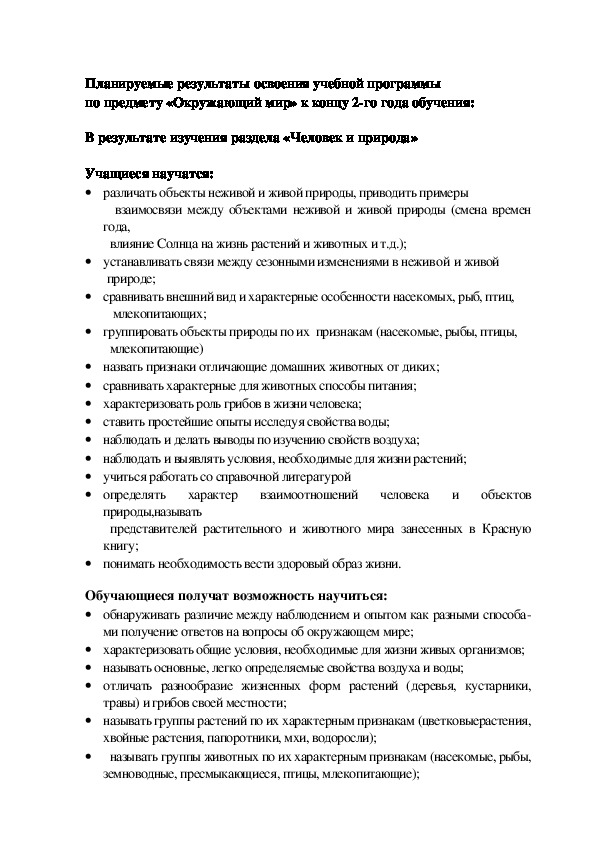 программа по окружающему мируО.Н. Федотовой, Г.В.