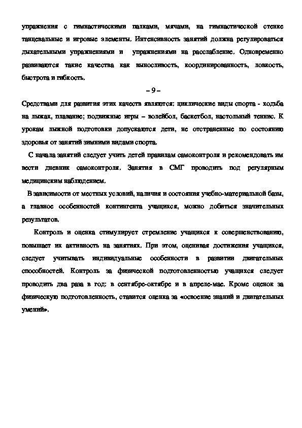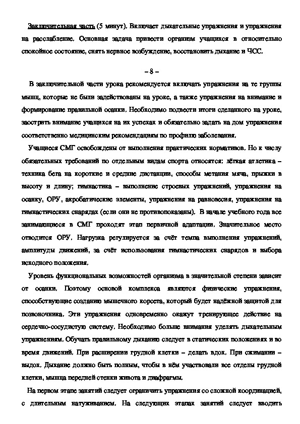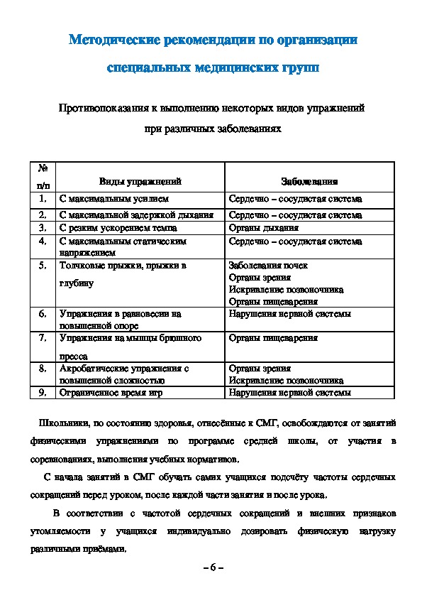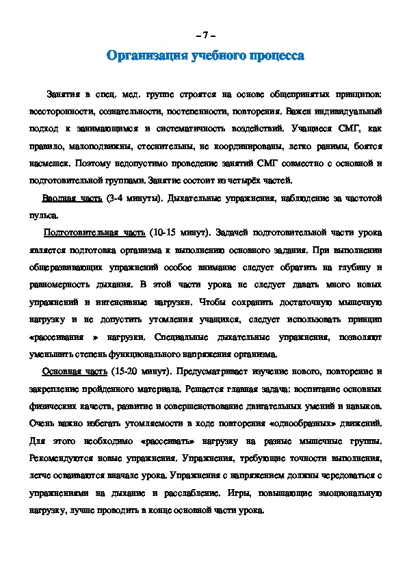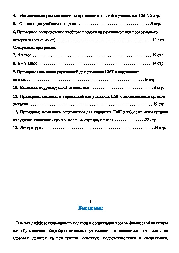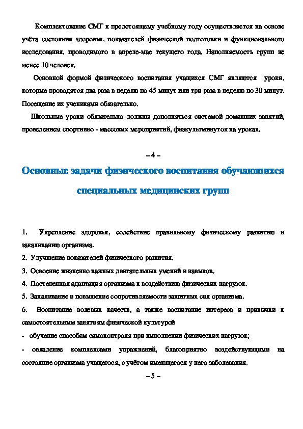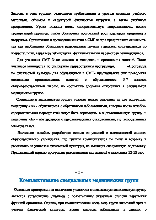 3. Основные задачи физического воспитания учащихся СМГ . . . . . . . . . . . . 5 стр.4. Методические рекомендации по проведению занятий с учащимися СМГ. 6 стр.