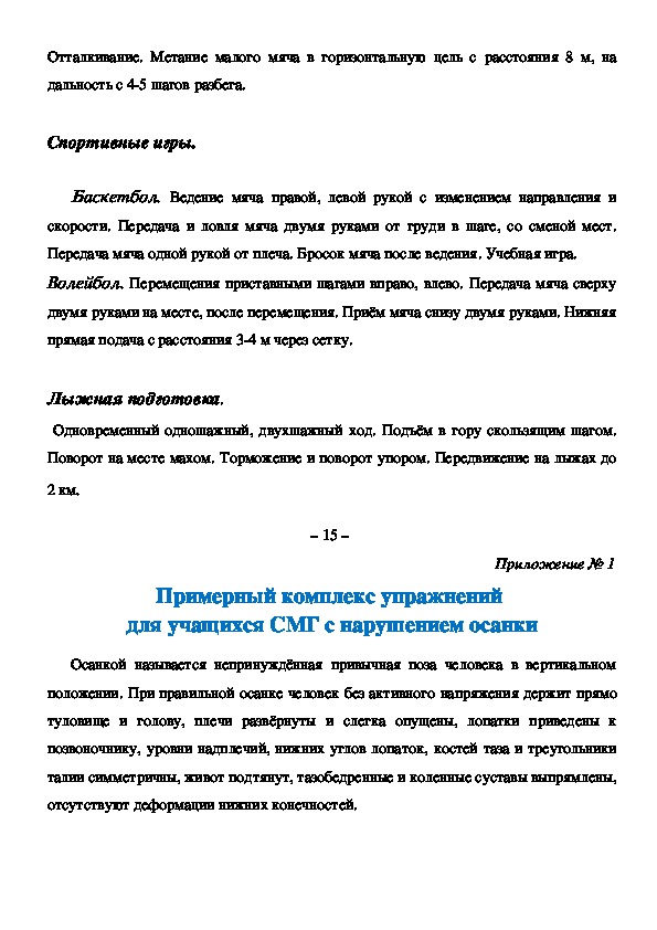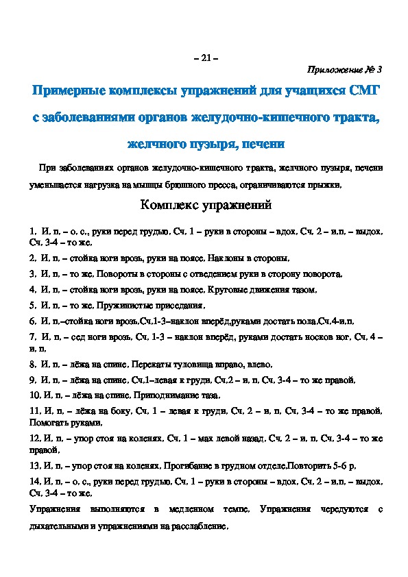 11. Примерные комплексы упражнений для учащихся СМГ с заболеваниями органов