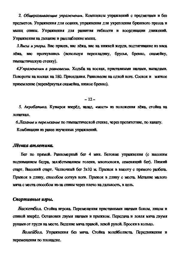 Предлагаемый вариант программы рекомендован для занятий с девочками 1213 лет.