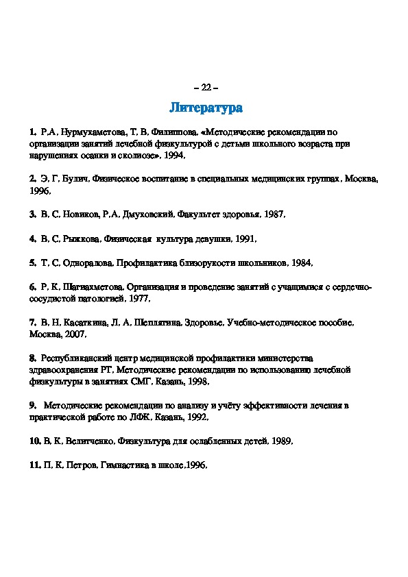 2. Э. Г. Булич. Физическое воспитание в специальных медицинских группах. Москва,