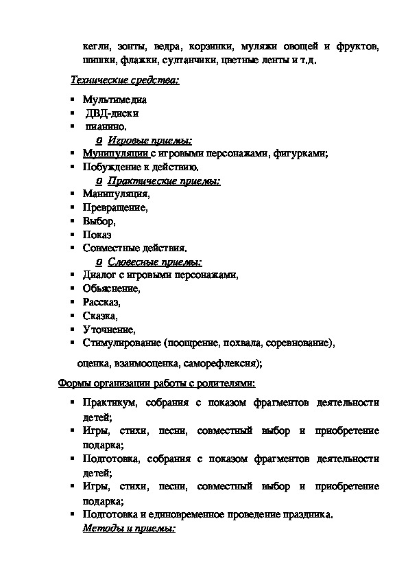 Методы и приемы: Словесные (беседы с родителями, рассказ о работе, выбор