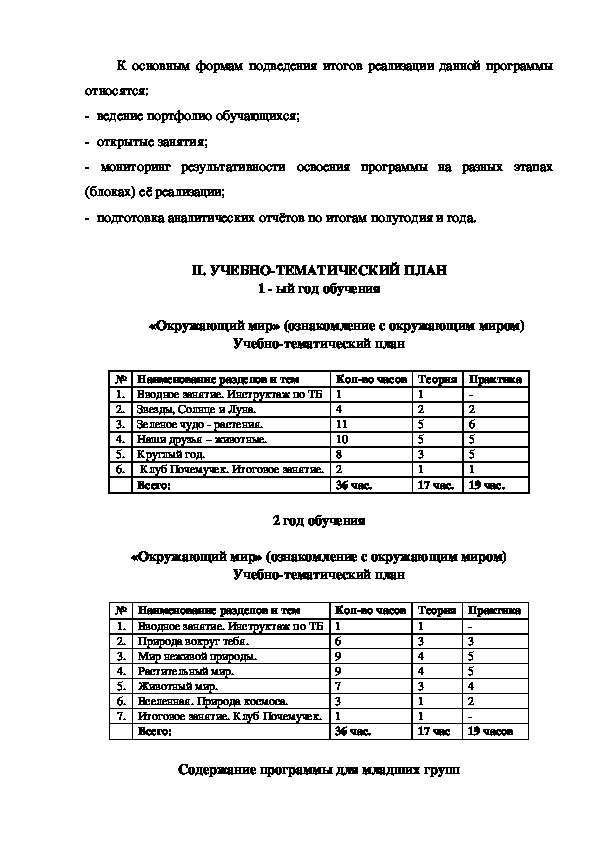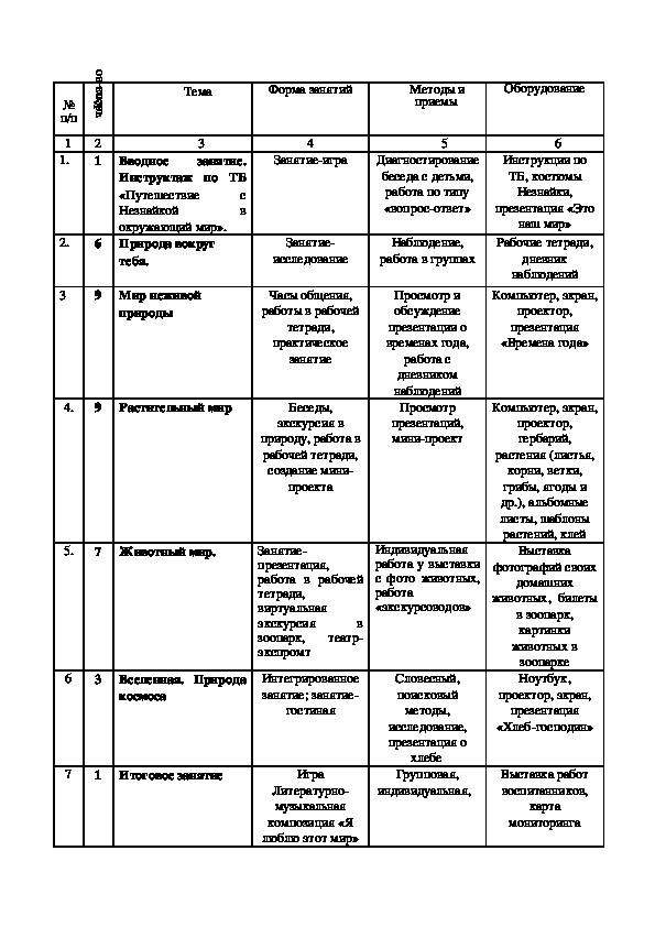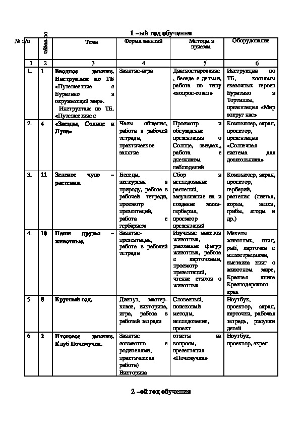 Почемучек» 1 час, на итоговое занятие – 1 час. С учётом выделенных