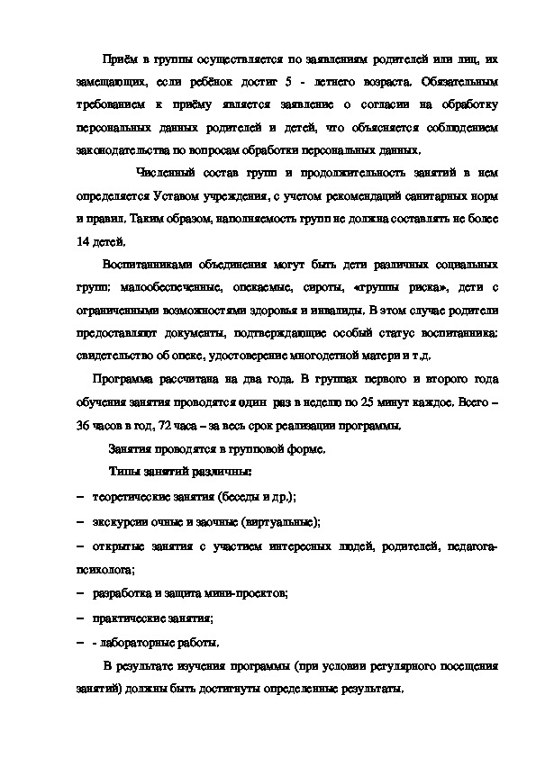 Срок реализации (общее количество часов) 2 года, 72 часа