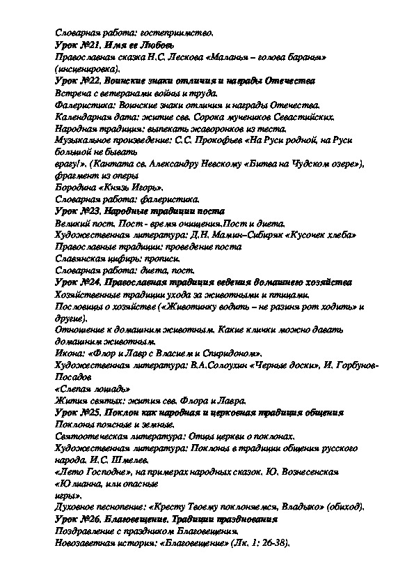 «Примерное содержание образования по учебному предмету «Православная