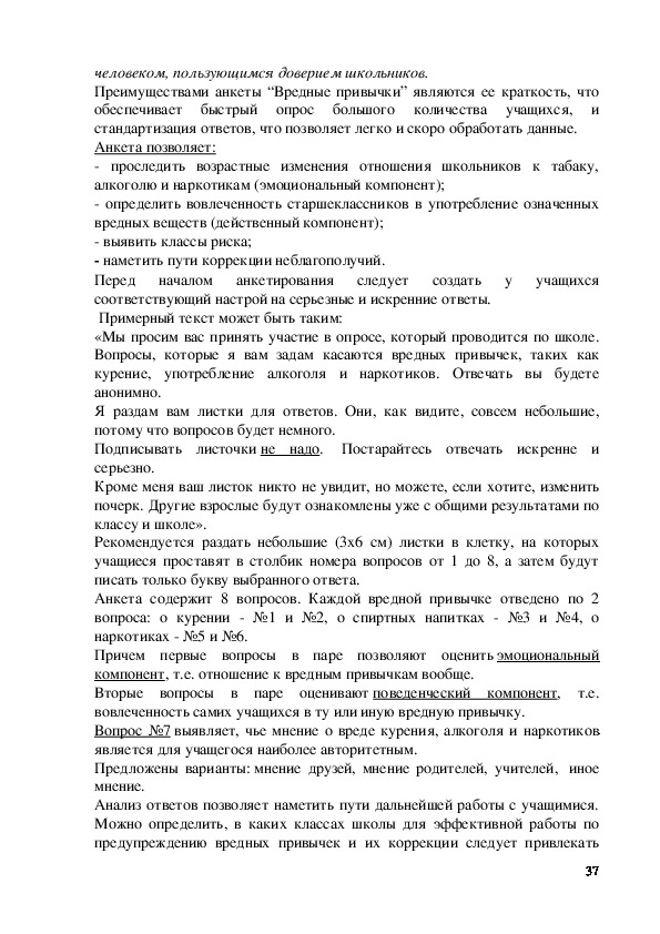 Анкета “ВРЕДНЫЕ ПРИВЫЧКИ”
