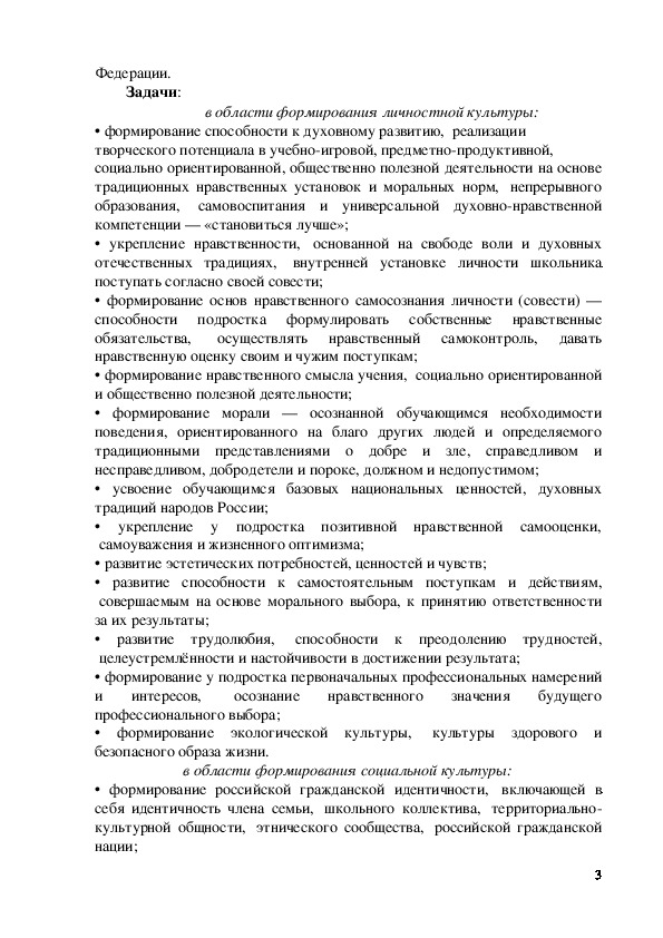 Программа разработана с учётом социального заказа государства и направлена на обеспечение их духовно-нравственного развития и воспитания, социализации, профессиональной ориентации, формирование экологической культуры, культуры здорового и безопасного образа жизни.