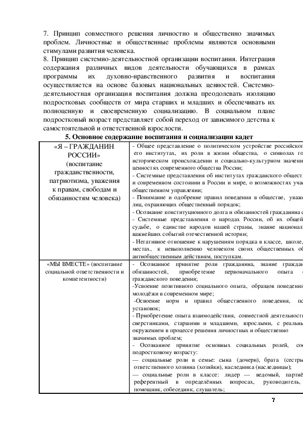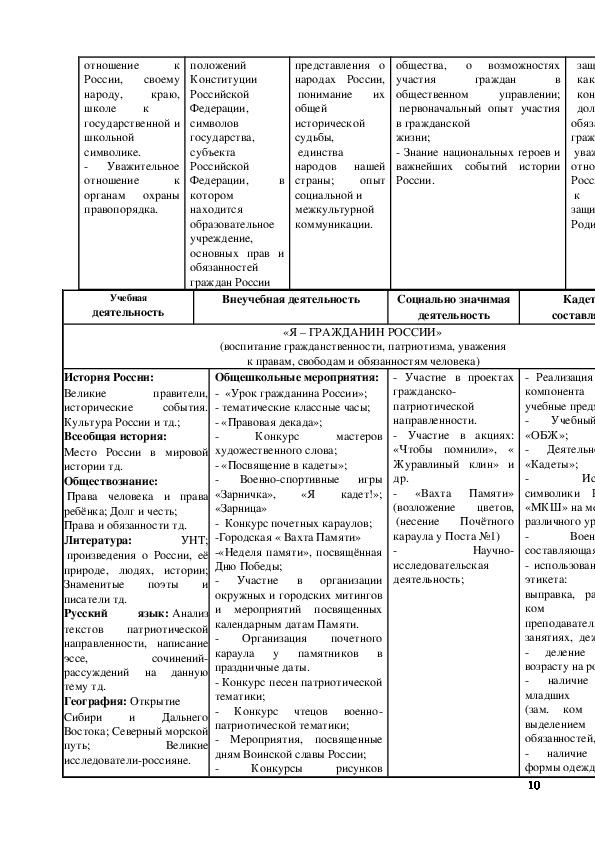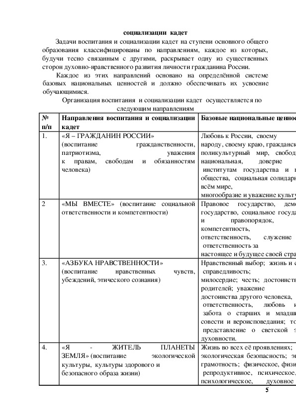 ПРОГРАММА ВОСПИТАНИЯ И СОЦИАЛИЗАЦИИ КАДЕТ
