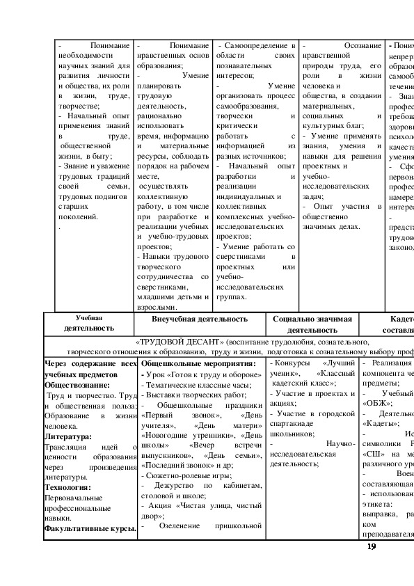 жизнедеятельности, осуществляемые в условиях кадетской школы.