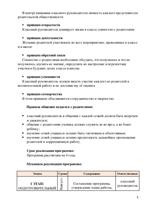 педагога с родителями заключается в рациональном сочетании пяти направлений