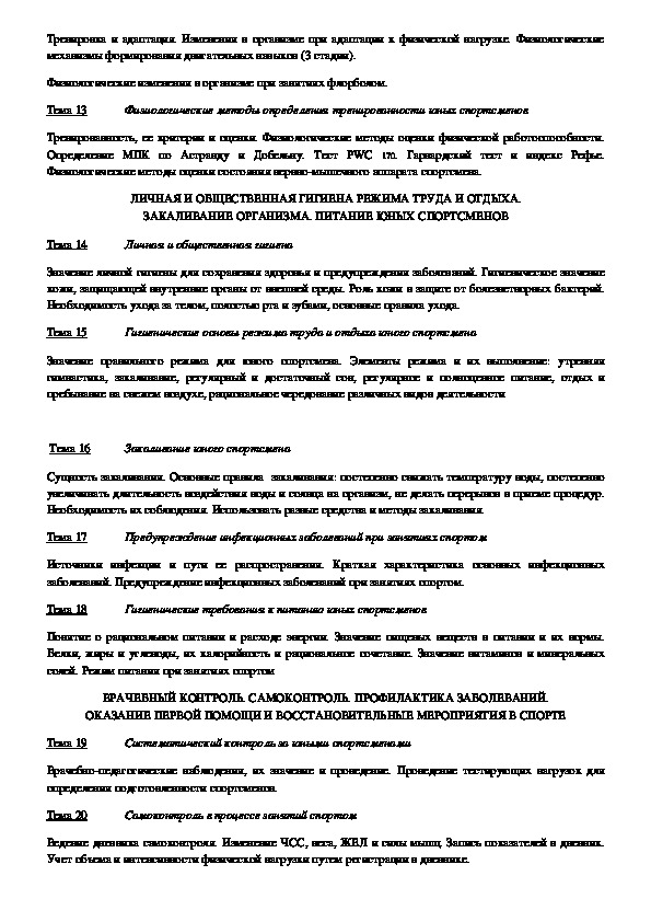 Гигиенические основы режима труда и отдыха юного спортсмена